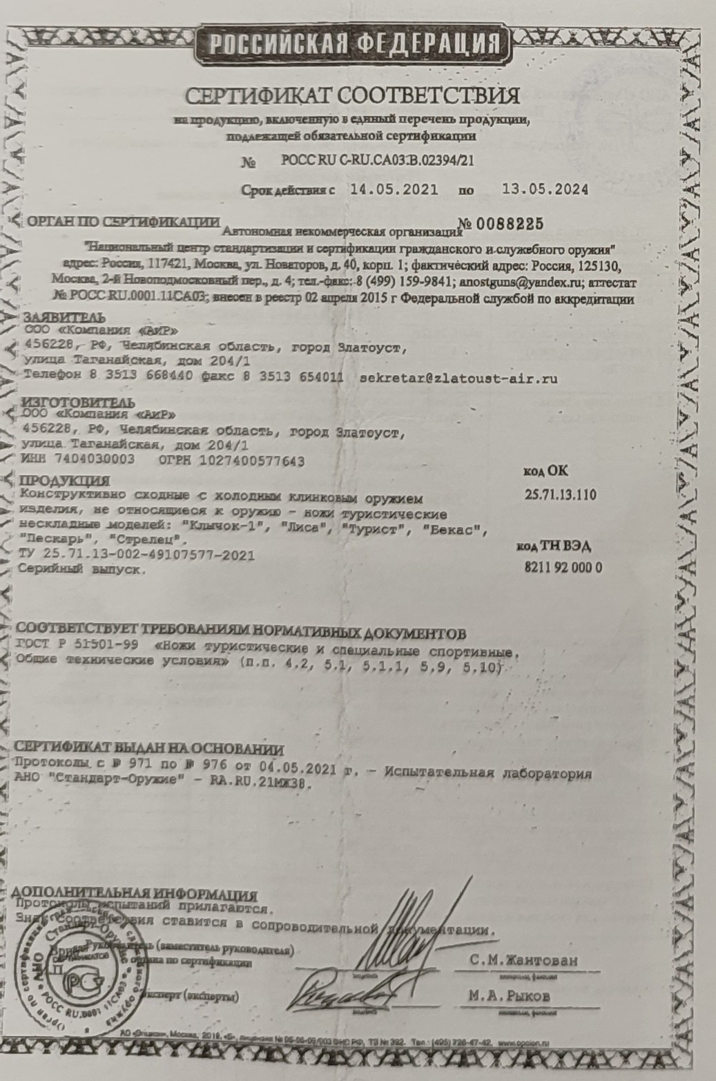 Средний универсальный, легкий и прочный нож с клинком, имеющим популярный обушок «лещиком». Вогнутые линзовидные спуски от середины ширины клинка образуют тонкое, прекрасно режущее лезвие. Демонстрирует отличные режущие качества. Толщина обуха позволяет оставить широкую голомень, что придает клинку дополнительную прочность.