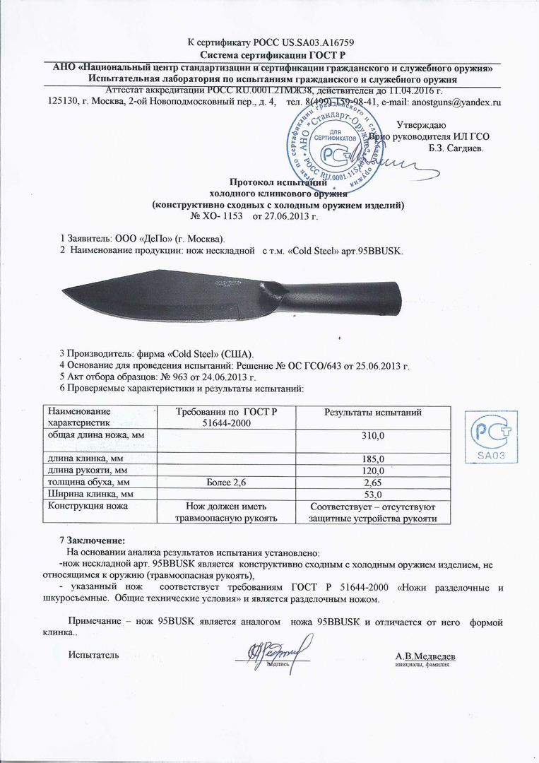 • Длина клинка (мм): 185