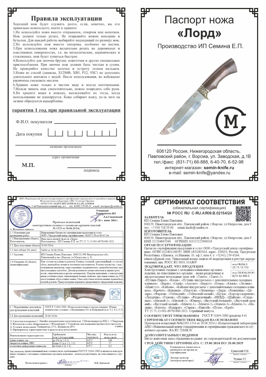 Лорд от мастерской Сёмина - простой и универсальный туристический нож. По доступной цене вы получаете инструмент, в который вложена душа мастера и традиции российского ножеделия. В комплекте идут кожаные ножны для удобства ношения.