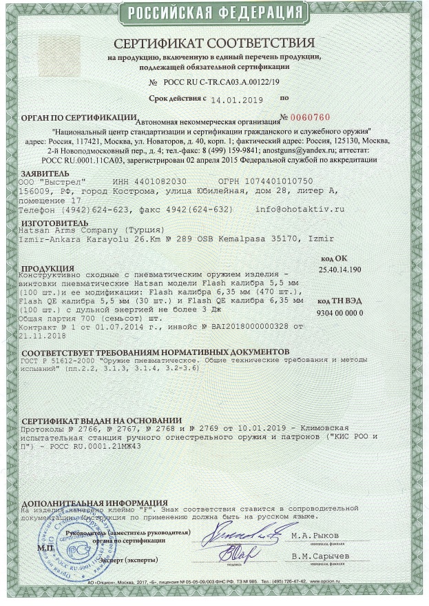 e-mail и системе обратной связи (в любое удобное для вас время). Информация от товаре Пневматическая винтовка Hatsan FLASH, калибр 5,5 мм носит ознакомительный характер, характеристики, внешний вид, цвет и комплектация могут быть изменены производителем без уведомления.